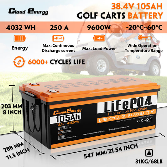 36V(38.4V) 105Ah LiFePO4 Golf Cart Battery With 20A Charger